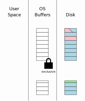 Once an exclusive lock is held, we know that no other processes are reading from the database file and it is safe to write changes into the database file. Usually those changes only go as far as the operating systems disk cache and do not make it all the way to mass storage.